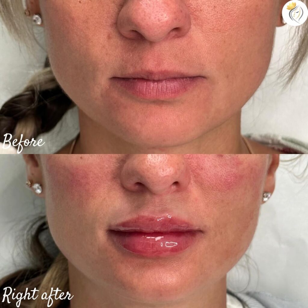 Since lip fillers settle over 1-2 weeks, it’s important to be patient before deciding if more filler is needed.